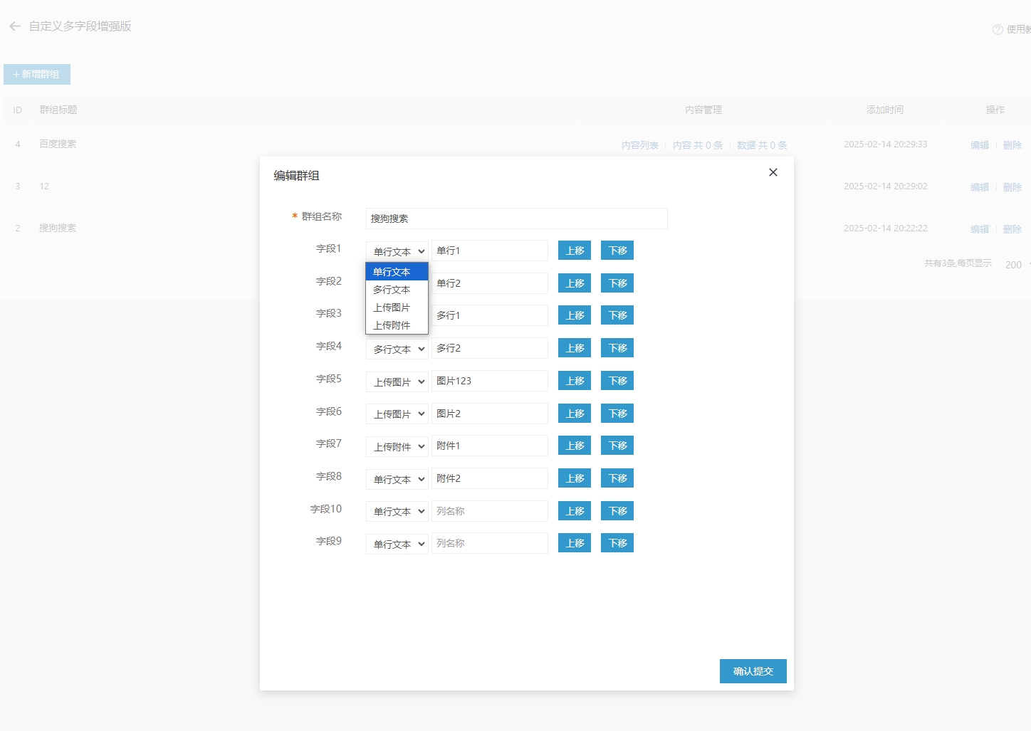 自定义多字段增强版